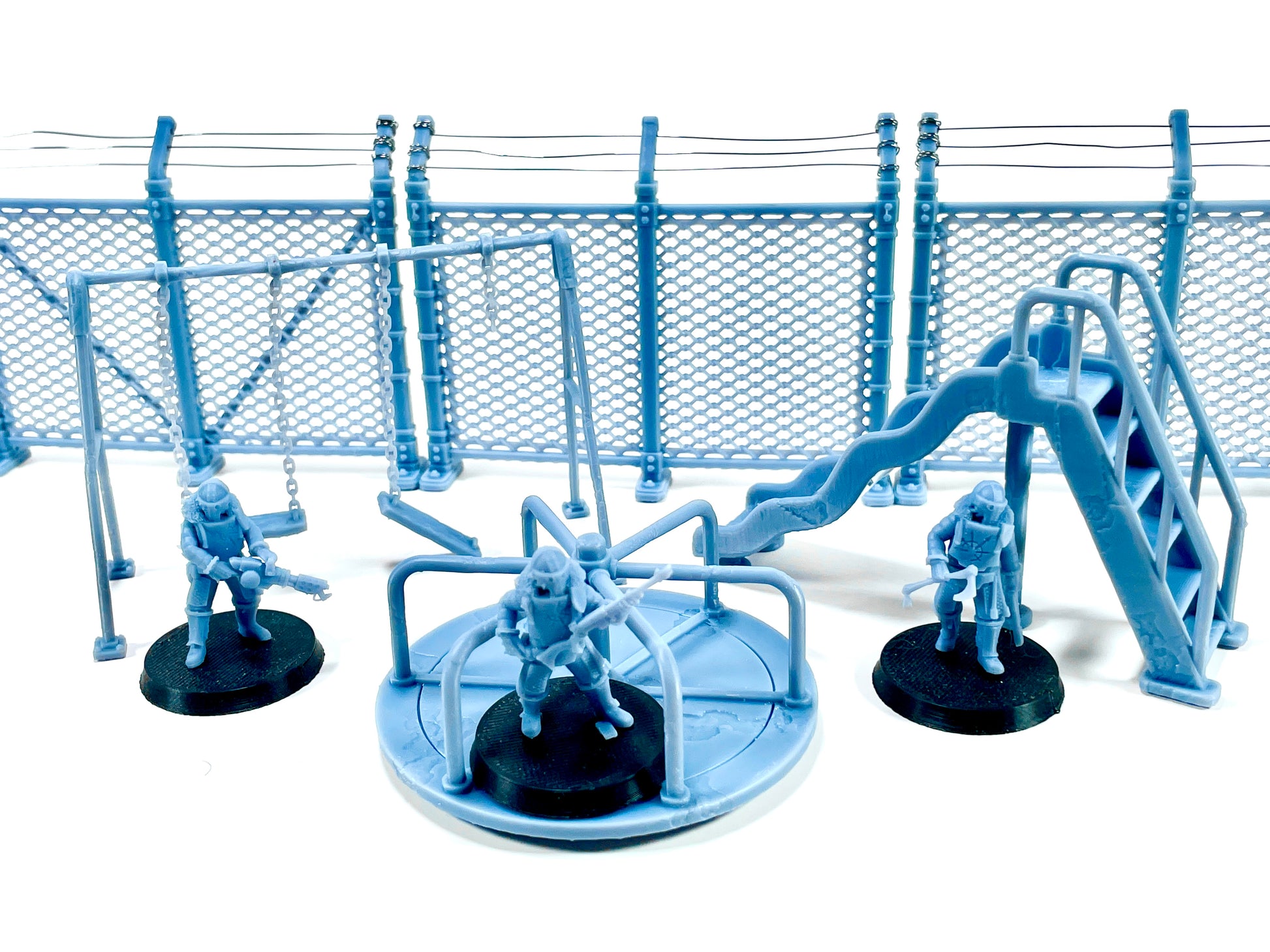 Abandoned Playground: This 3-piece set is a quintessential part of imagery in abandoned nuclear towns, so we had to include it. It features a rusted slide, swing set, and merry-go-round (roundabout) that have all seen better days. Now they sit silent and overgrown, perfect for grim narrative moments.