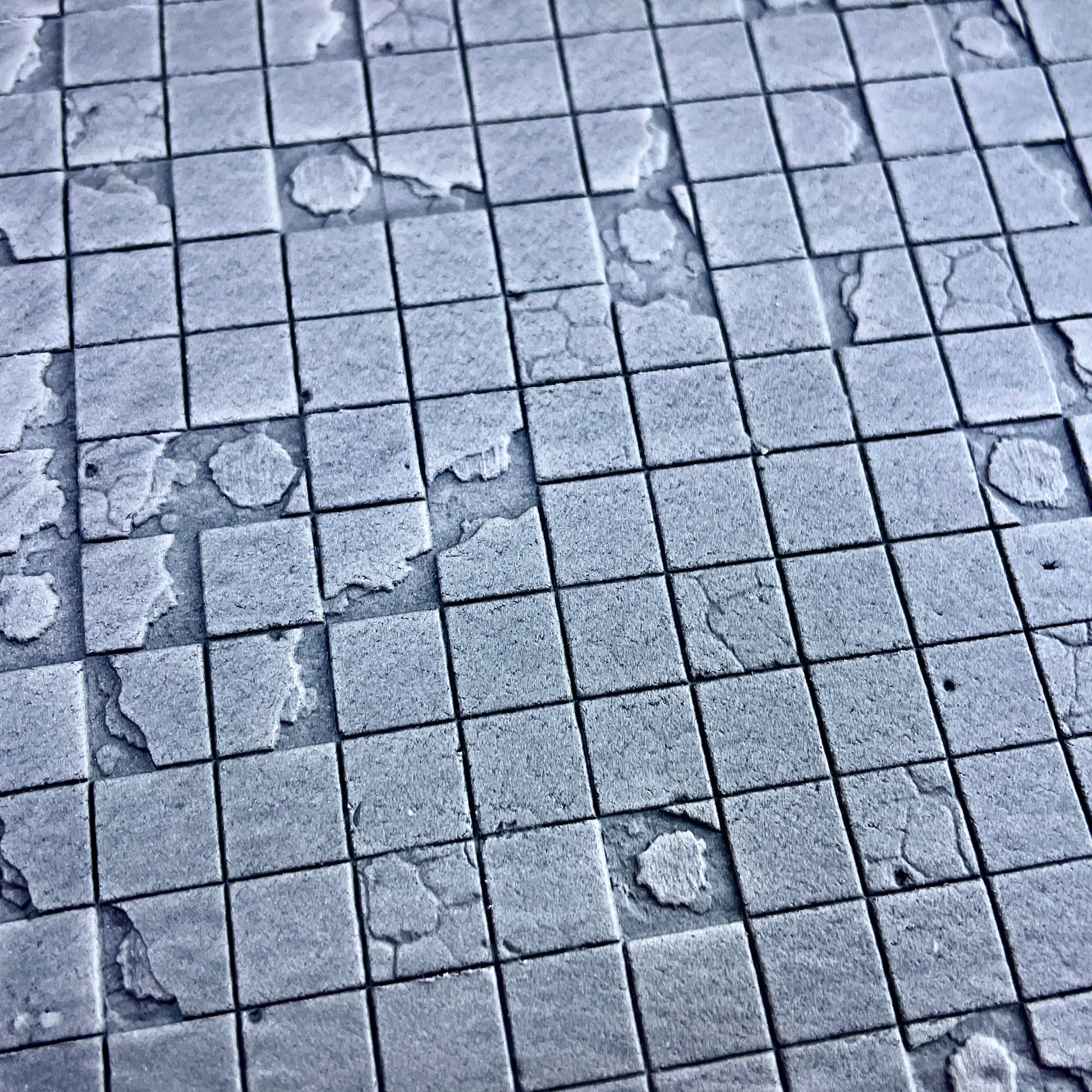 -Broken Ceramic Tiles: This roller will work amazingly for the floors of commercial and residential buildings and ruins within a containment zone. I tried to make a good variety of cracked, missing, broken, and undamaged tiles so that it looks realistic. Again, this should make some nice bases.