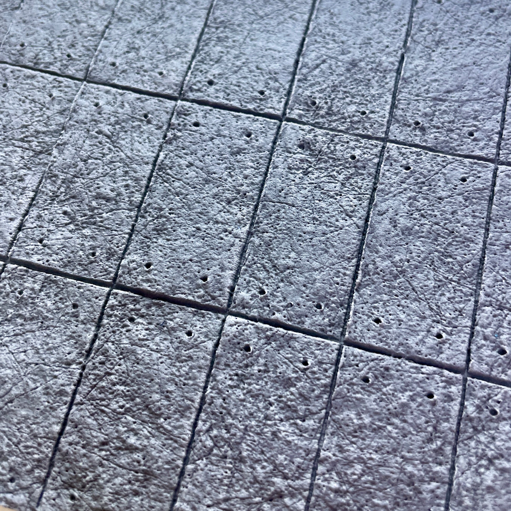 Industrial Site: This is a floor for inside warehousing or for lanes between buildings. It has a variety of damaged metal and concrete designs on the roller, so it should make for some interesting bases as well. I made the hazard stripes very easy to paint as they don't reach the edges of the strip.
