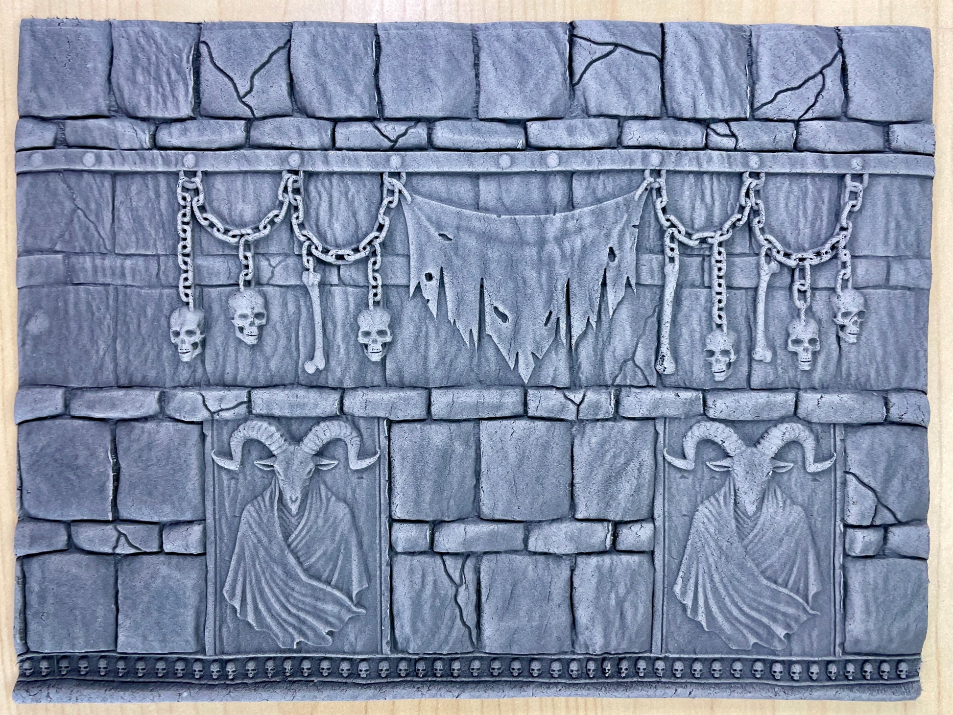 - Shrine Banner Wall: This roller is the detailed wall roller for the set and depicts bones chained to the walls along with ancient, tattered banners. It should make some amazing ruins and dungeon walls.