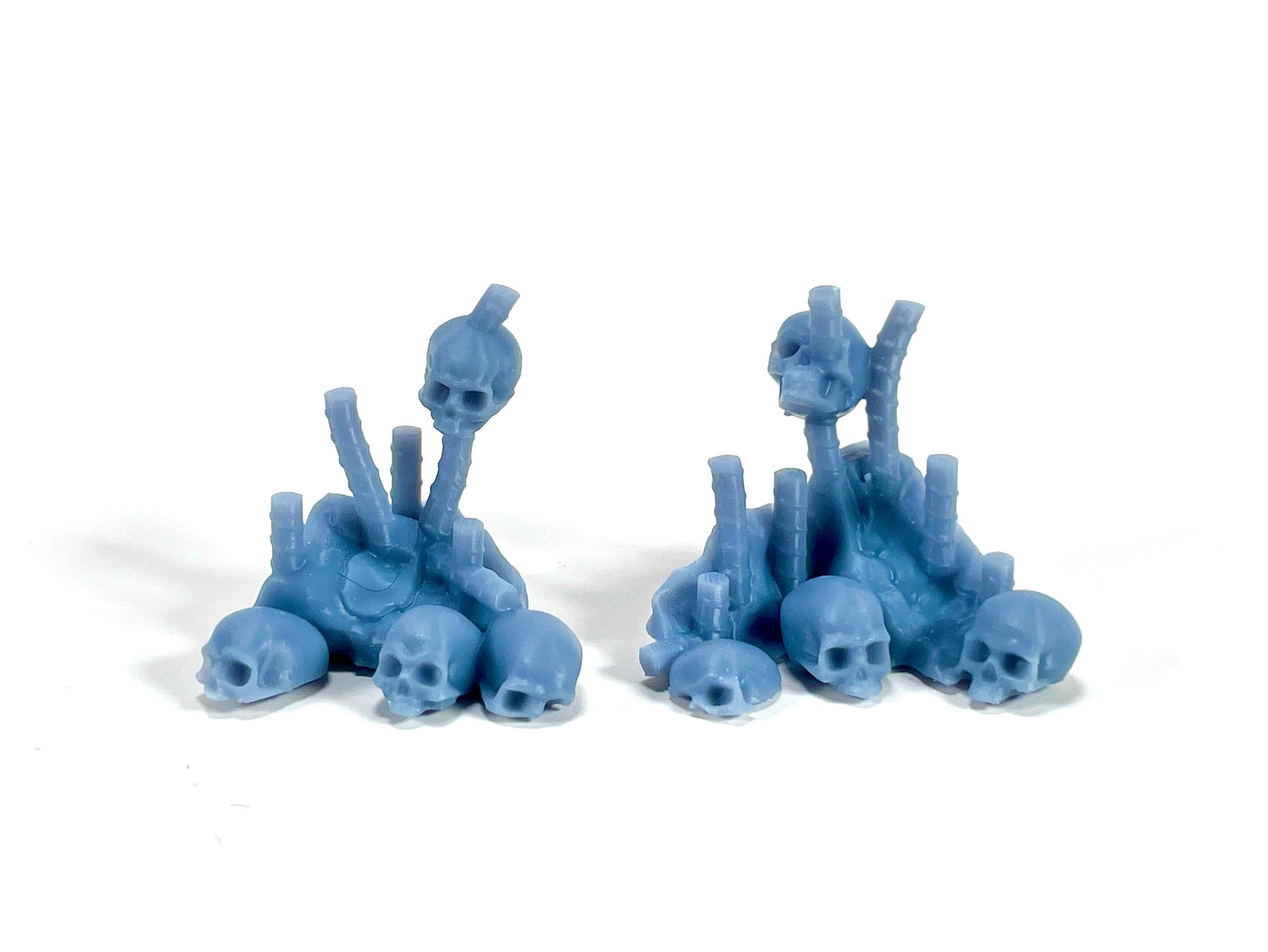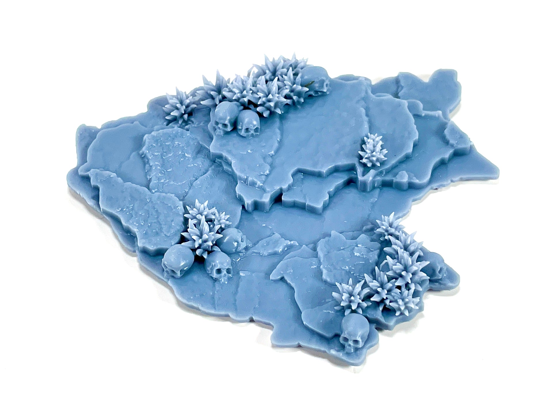 Cracked, stacked, and broken asphalt islands with overgrown weeds and scattered skulls. This 3-piece set is perfect for filling out blank areas of your map, but also works great for custom scatter builds, just add barrels, tires, or other debris. They’re also a perfect addition to diorama setups.