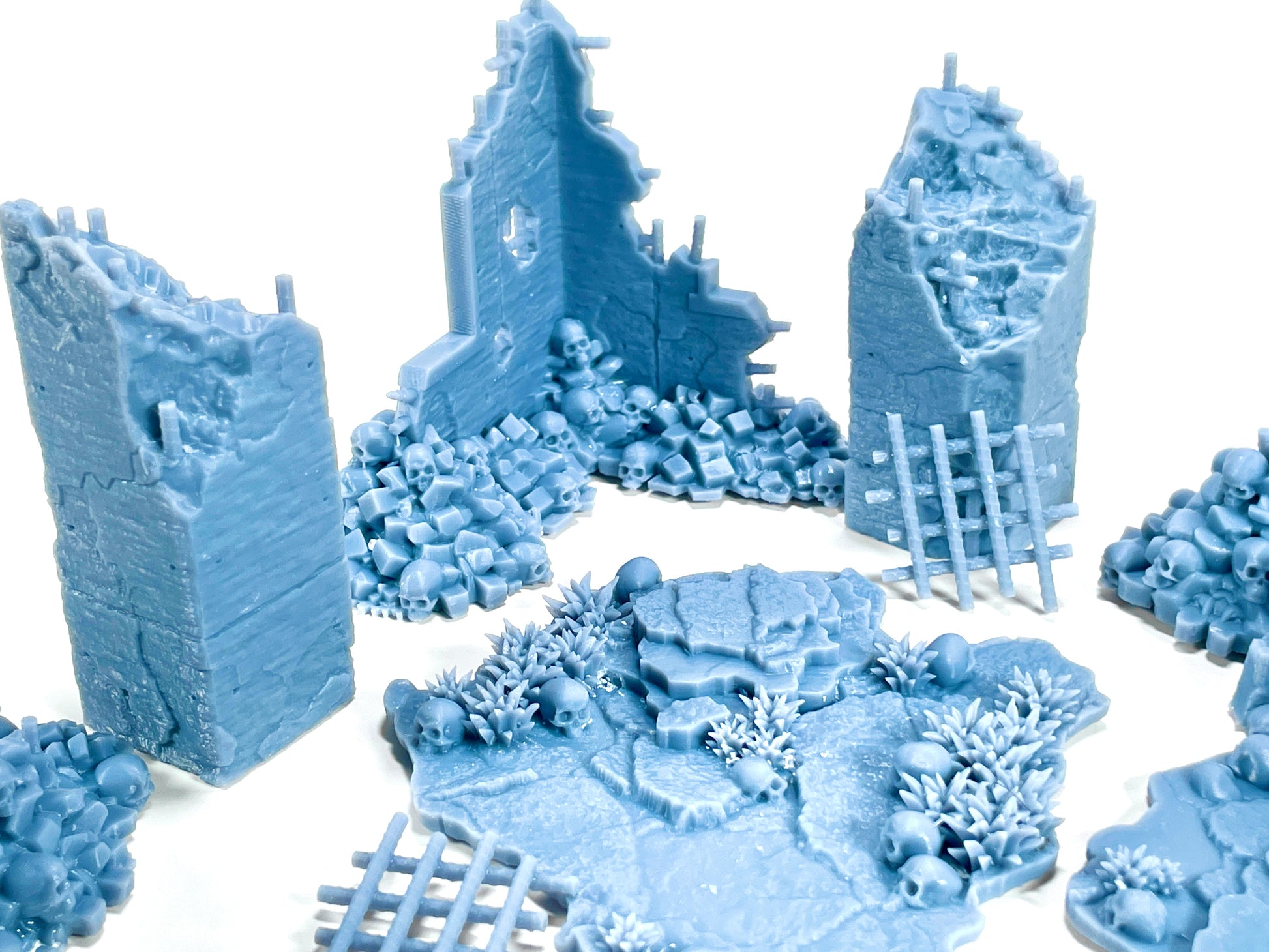 We've included everything you need to build your post-apocalyptic metropolis, from shattered streets and crumbling sidewalks to the remnants of derelict buildings. Twisted rebar juts from every surviving structure, and the skulls of the fallen are a grim reminder of those who didn’t make it out.