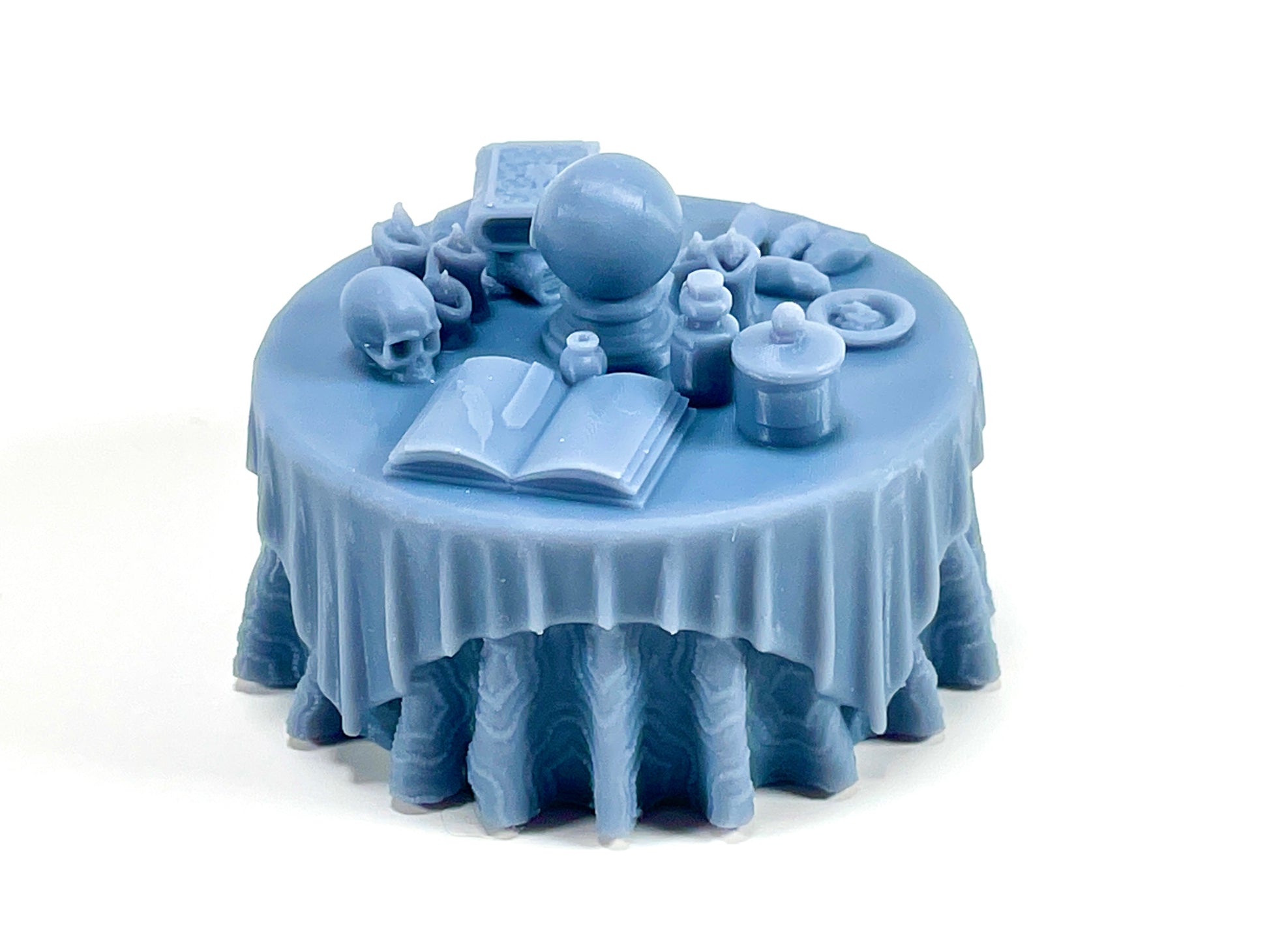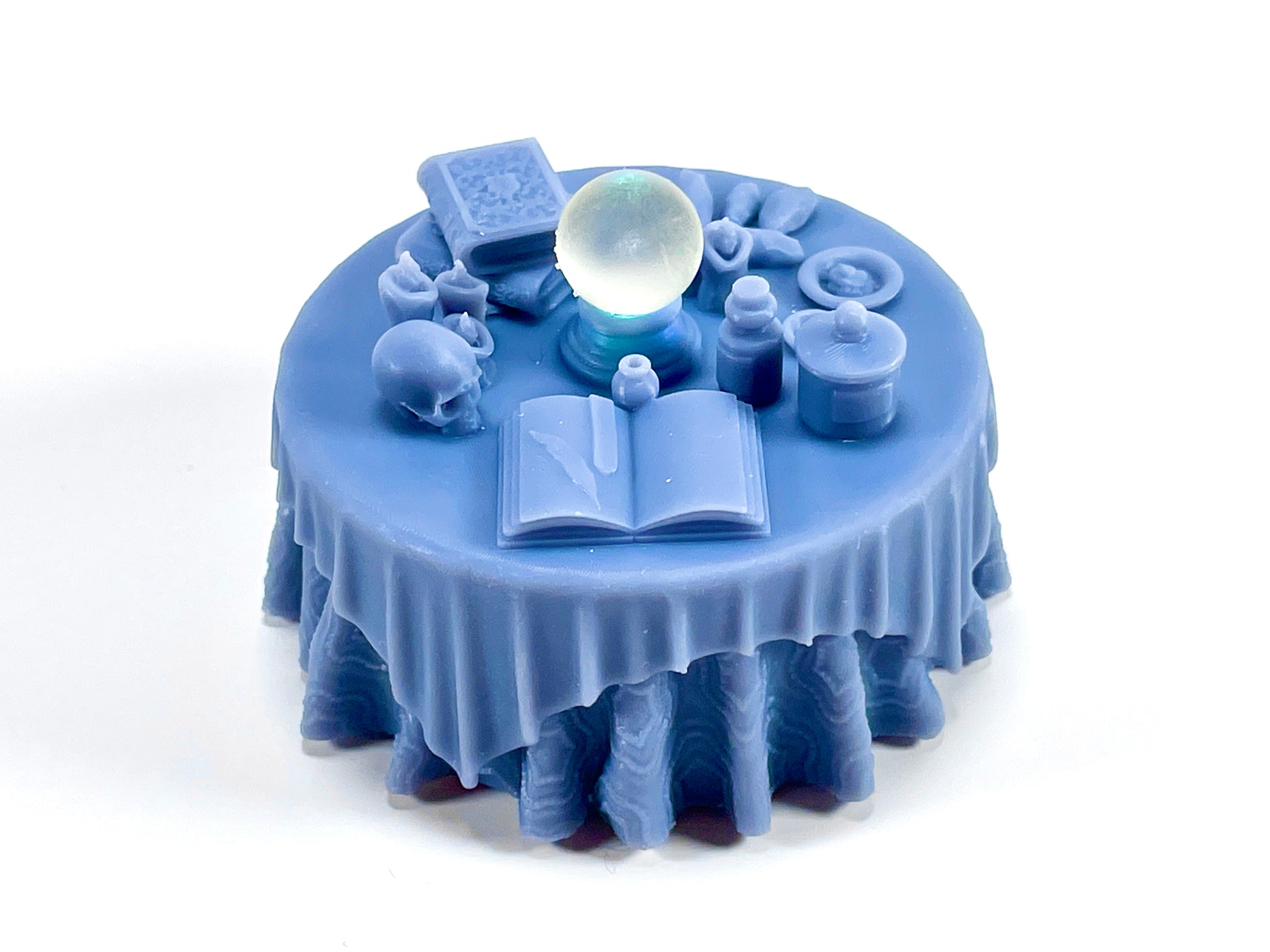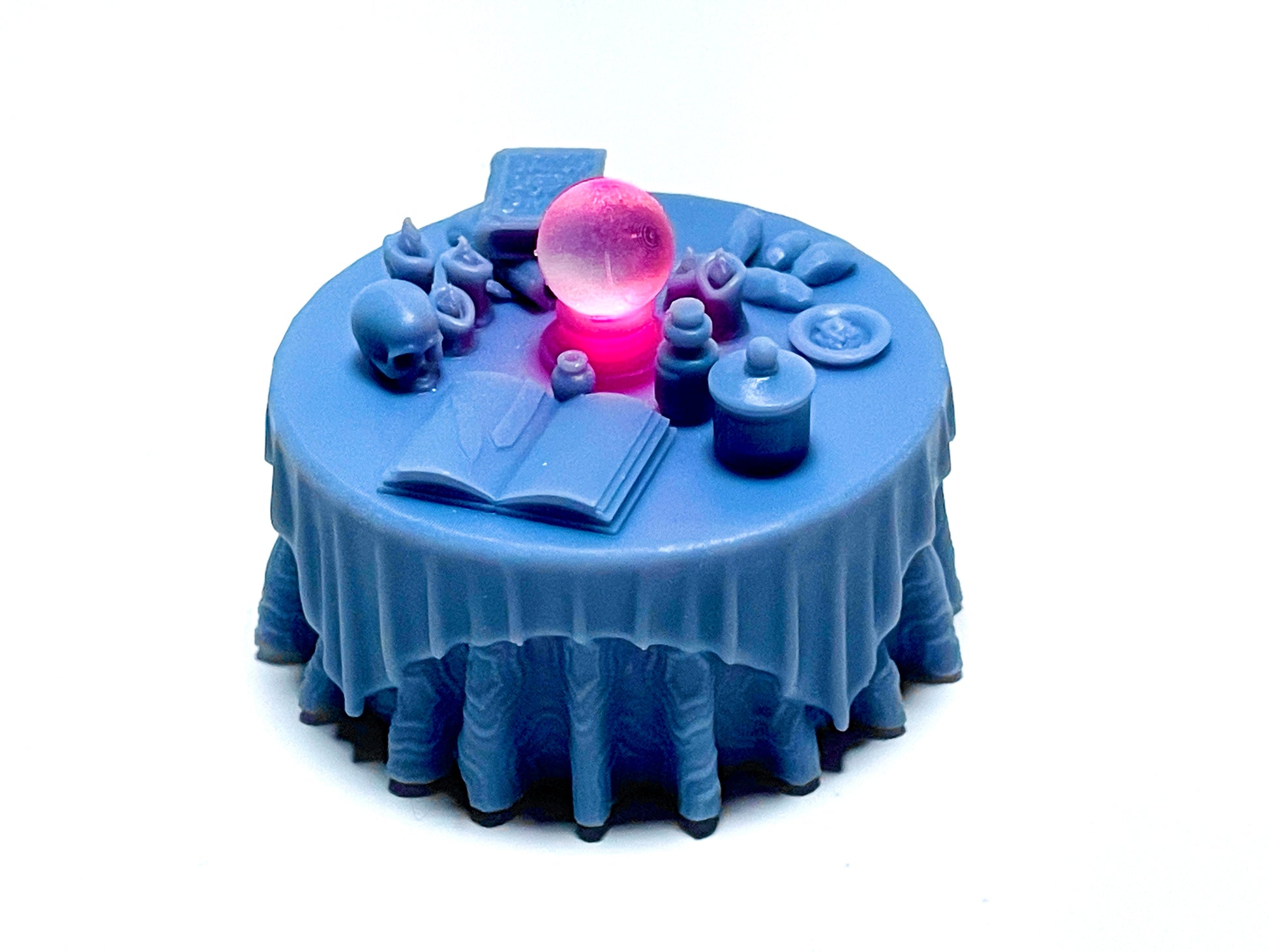 - Vision Table & Alchemist's Table: Two magical tables designed for tealight illumination! The Vision Table lights a glowing crystal ball, and the Alchemist's table lights a flame to simmer a cauldron. You can also print them solid and use them without any tealights.