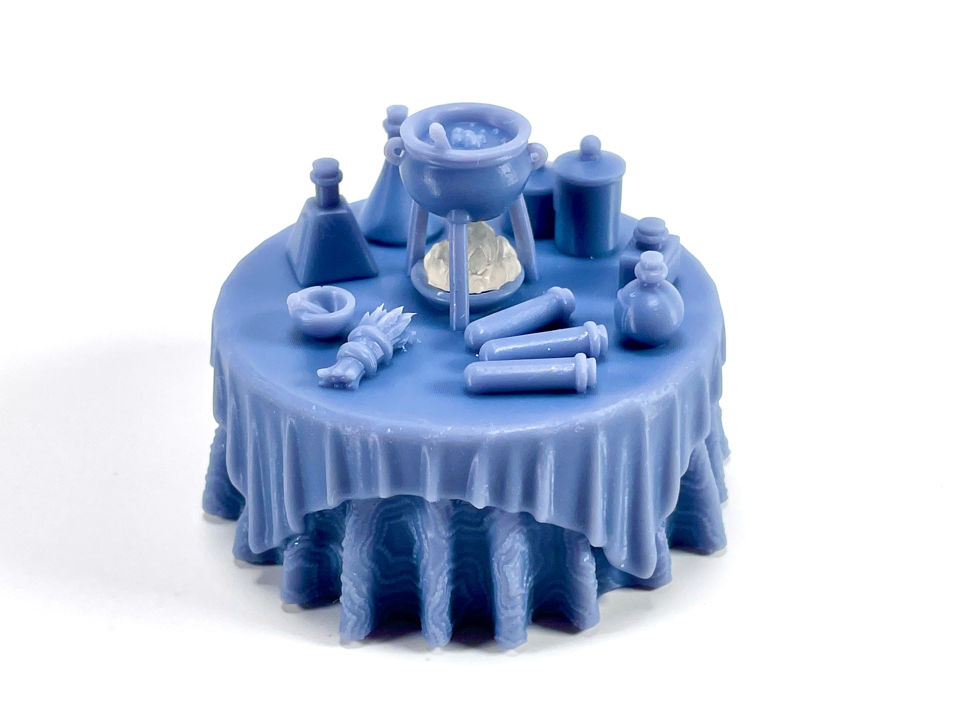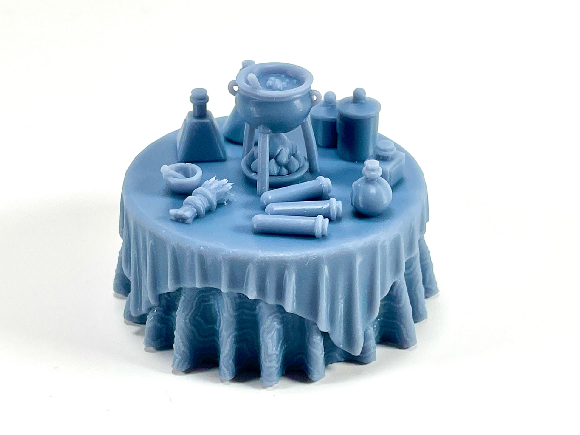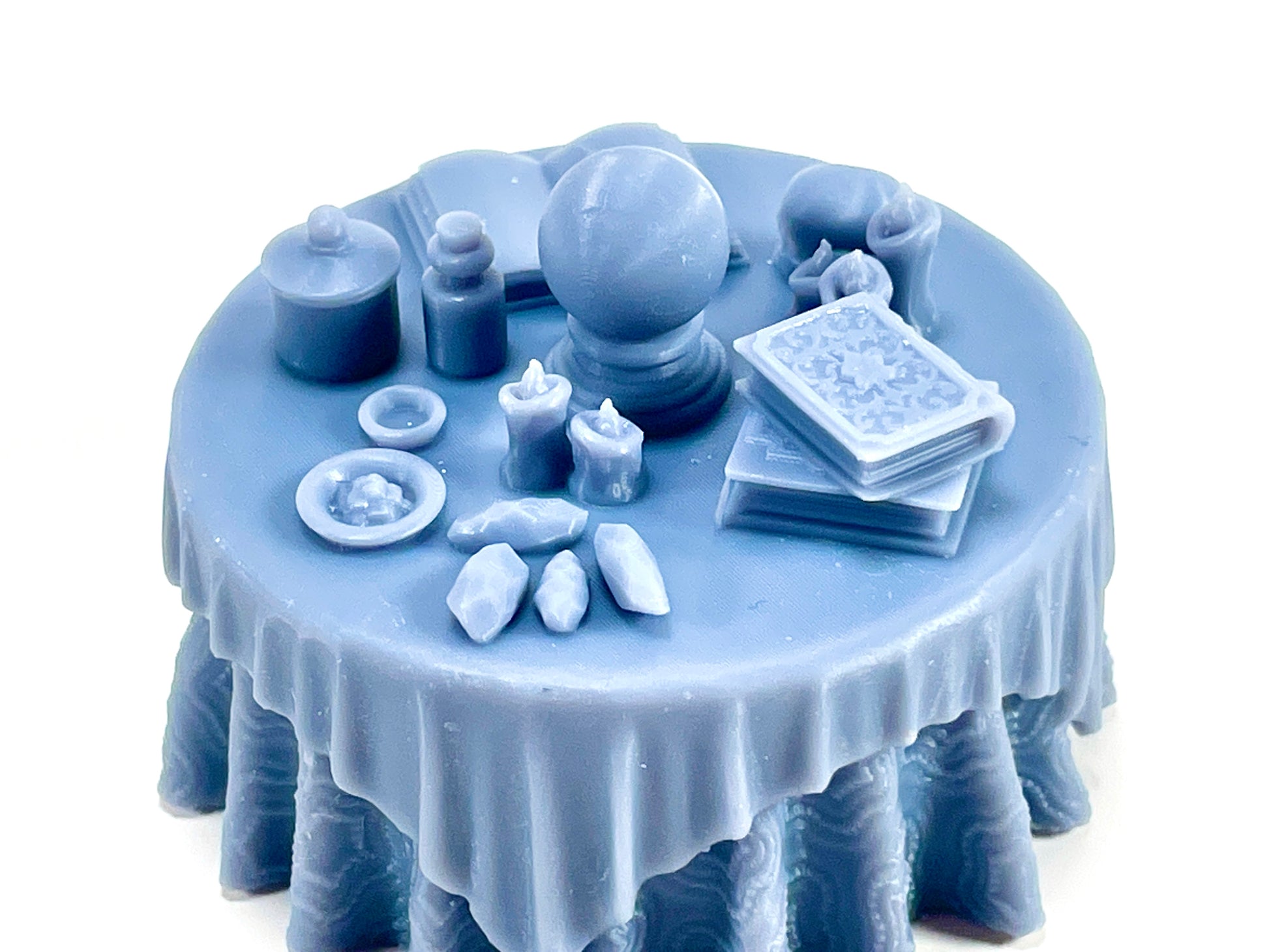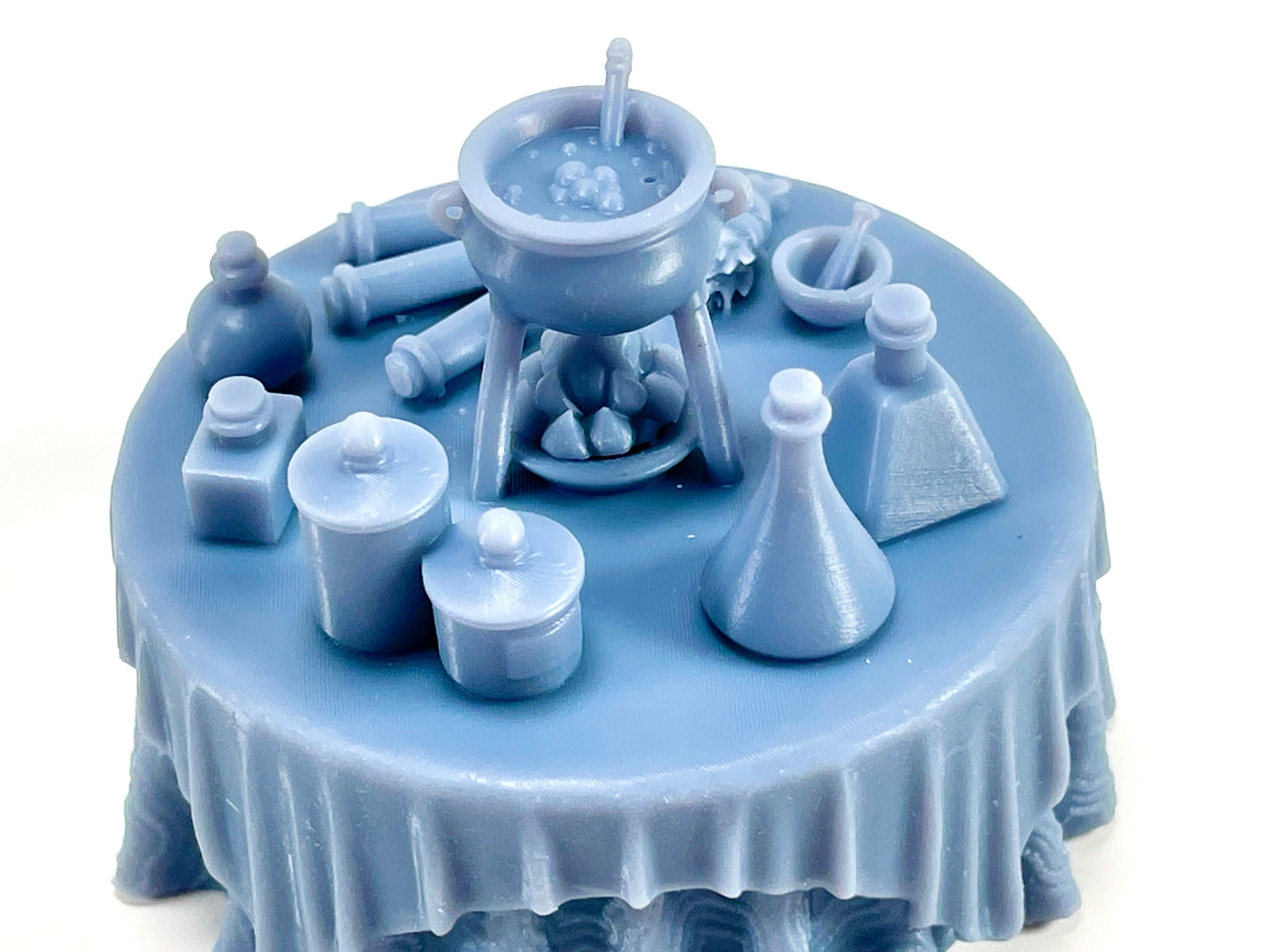 - Vision Table & Alchemist's Table: Two magical tables designed for tealight illumination! The Vision Table lights a glowing crystal ball, and the Alchemist's table lights a flame to simmer a cauldron. You can also print them solid and use them without any tealights.
