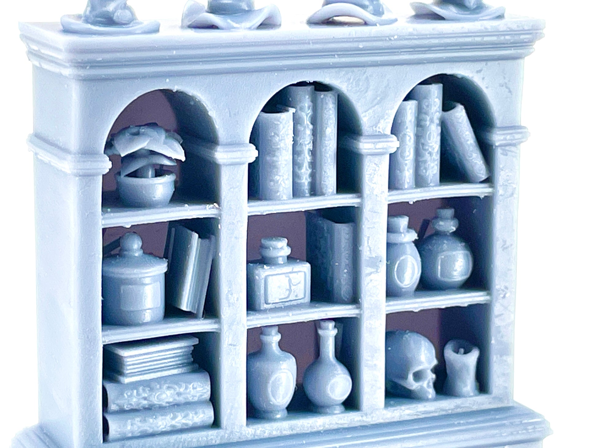 The terrain in the set provides all odities of furnishing covered in tomes, potions, ingredients, and magical tools and items to scatter sets to decorate any sorcery-themed room or building. We even included some LED Tealight tables with a magical theme in the set, so you can really bring your terrain to life!