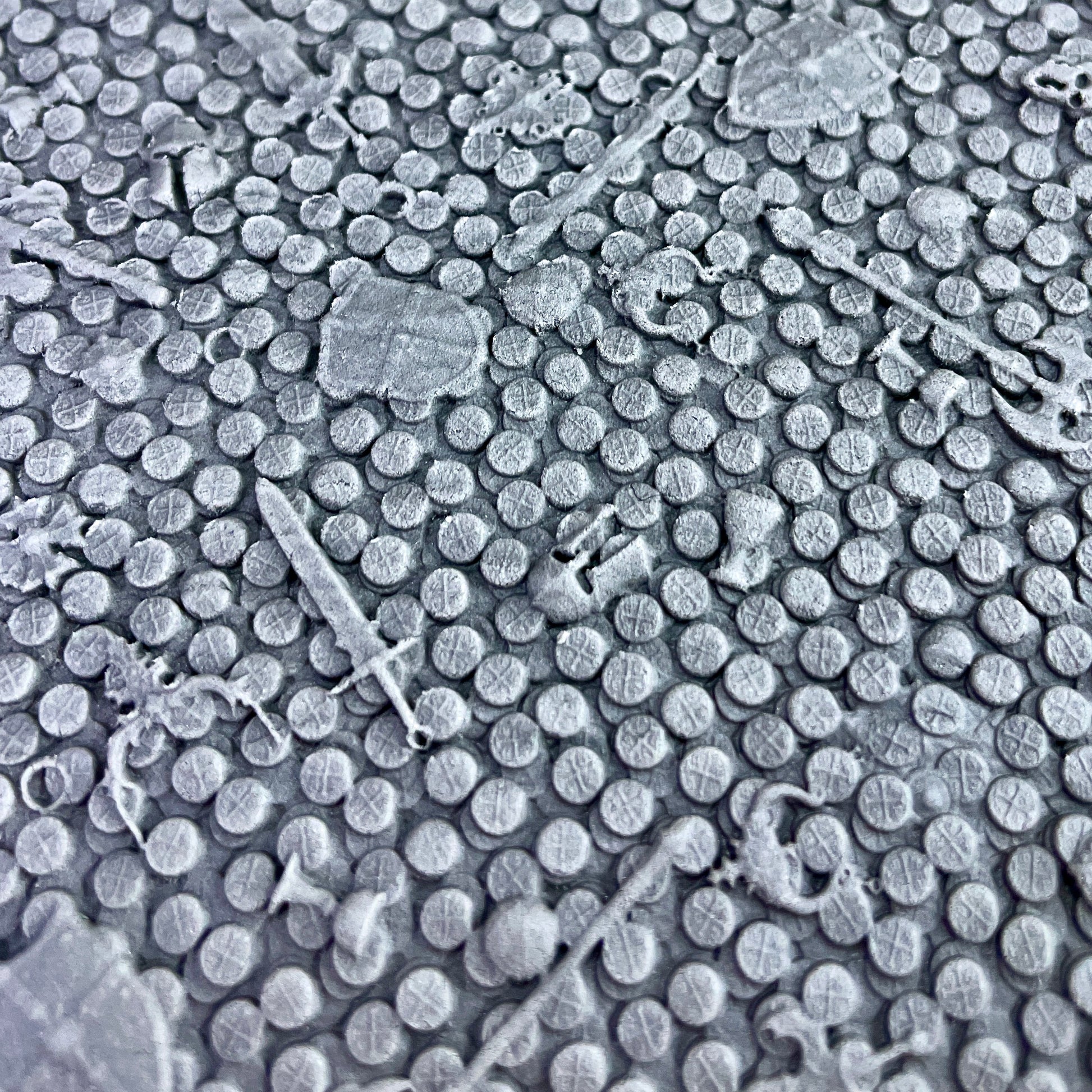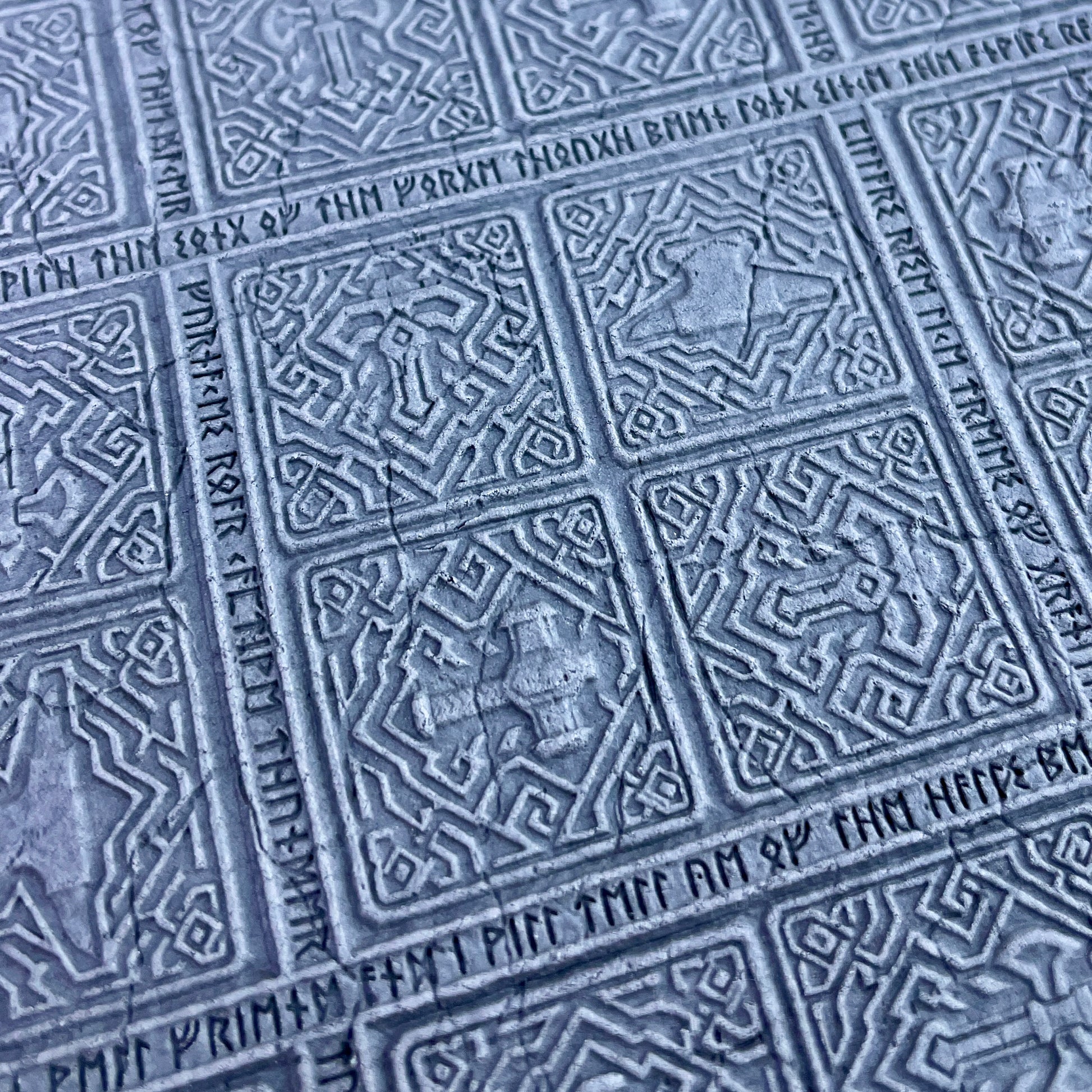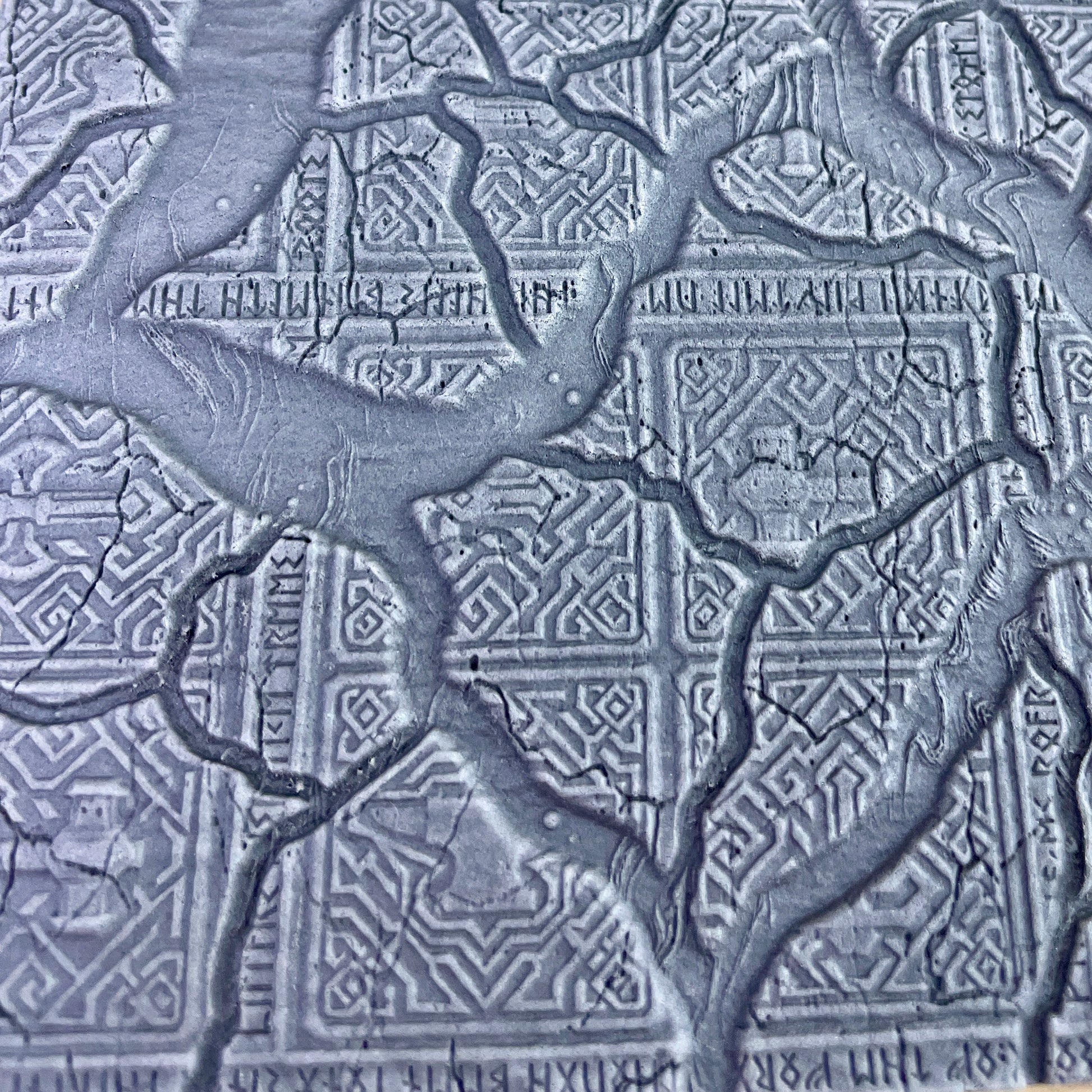Dwarven Forge Stone Floor: The idea of this roller was to make the floor of the forge area. This roller makes a tiled texture of intricately carved stone, each one marked with a dwarven weapon or tool in the design. Words of ancient dwarven wisdom are inscribed between the tiles. It will make great tiles for TTRPGs and will also work very well for some bases.